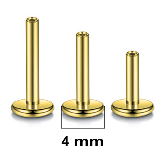G23 Gold PVD Titanium Threadless Push In Labret Shaft 4mm Base