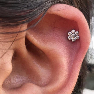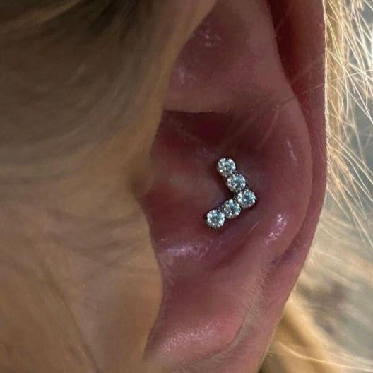 G23 Titanium Threadless Push In 3 CZ Tragus Labret