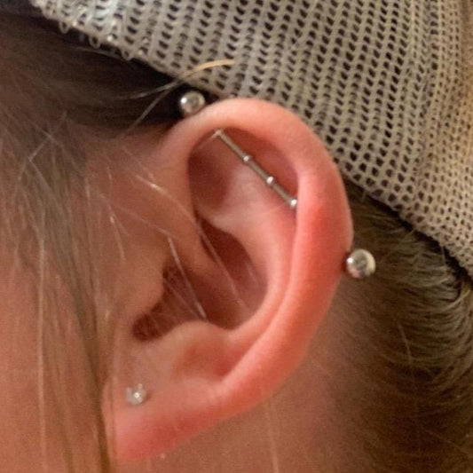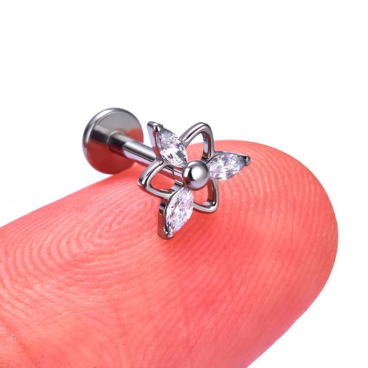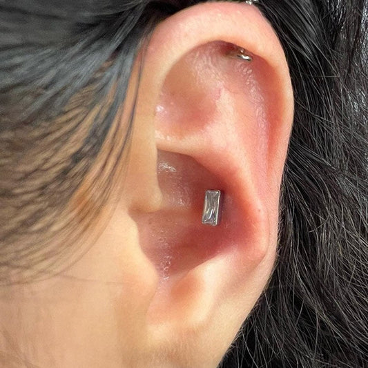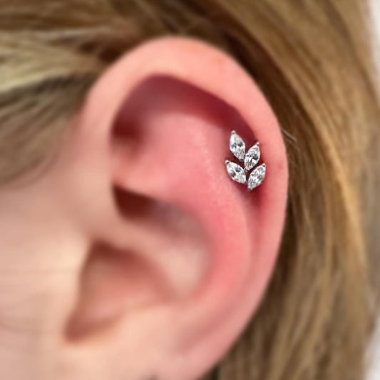 Steel Triangle CZ Bead Cluster Tragus Barbell
