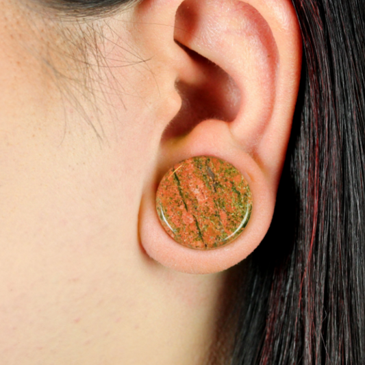 Unakite Stone Double Flare Plugs