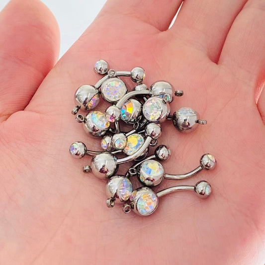 Epoxy Coated Steel Ferido Multi CZ Belly Ring