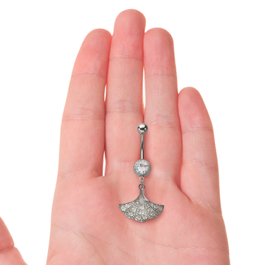 Ginkgo Leaf Paved CZ Dangle Belly Ring