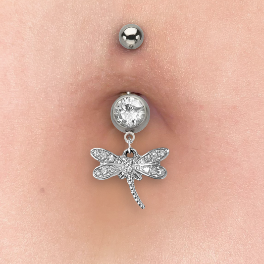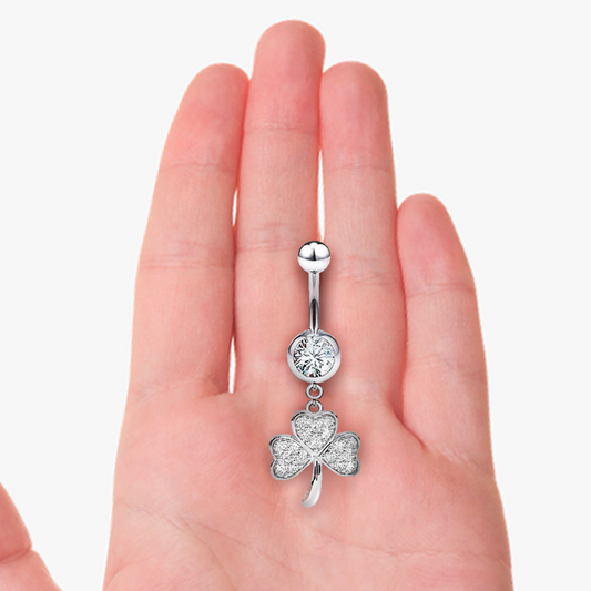CZ Shamrock Cloverleaf Dangle Belly Ring