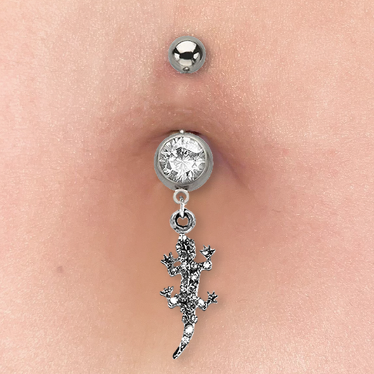 Paved CZ Gecko Lizard Dangle Belly Ring