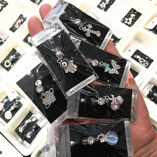 Top Mix CZ Dangle Belly Ring (12pc/pkg)
