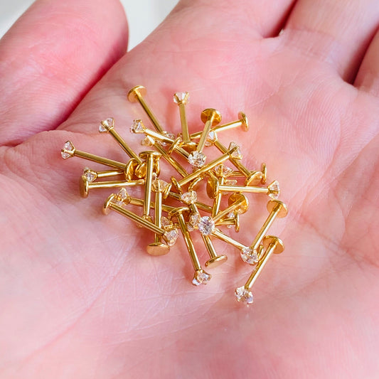 G23 Gold PVD Titanium Prong Set CZ Threadless Push In Labret