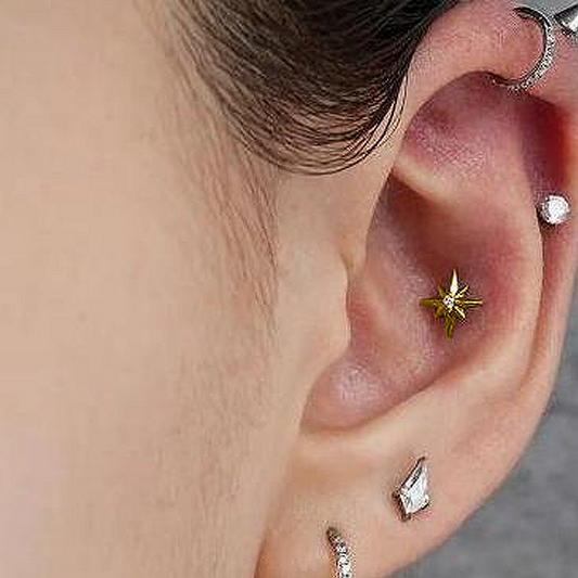 Steel Threadless Push In 5 CZ Leaf Tragus Labret