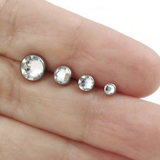Steel Prong Set CZ Gem with Round Screw Back