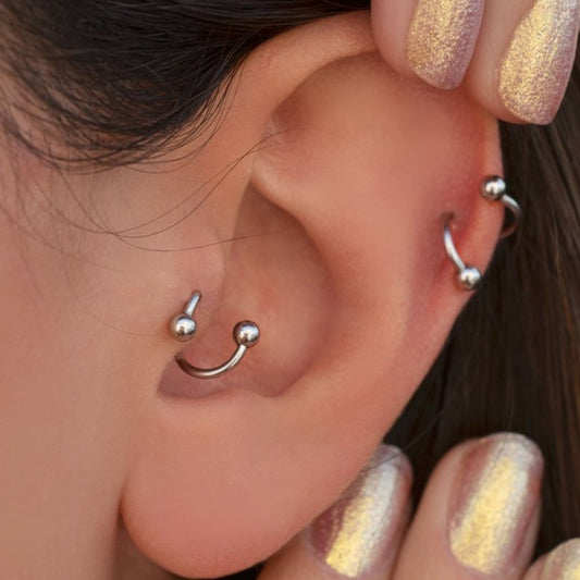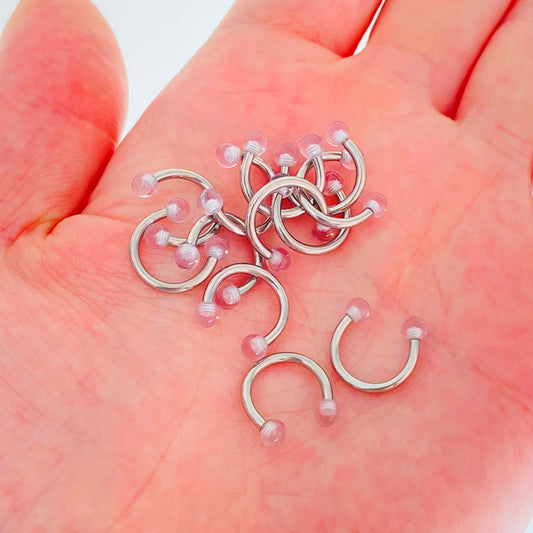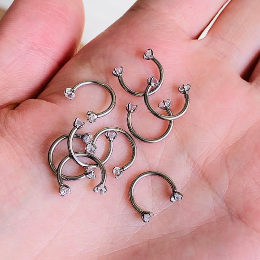G23 Titanium 16G Prong Set Internally Threaded Double CZ Horseshoe