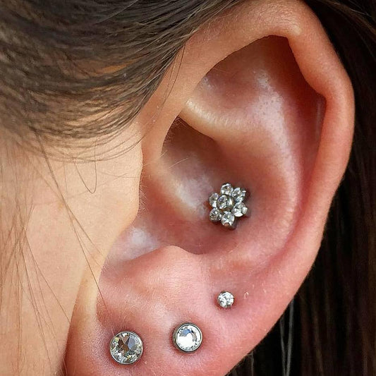 G23 Titanium Dermal Anchor 3 Hole Base with Flat Opal Top Set