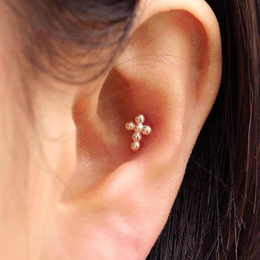 G23 Titanium Internally Threaded Beaded Cross Tragus Labret