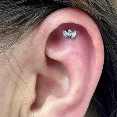 Steel Threadless Push In 5 CZ Leaf Tragus Labret