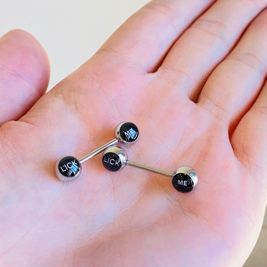 Lick Me 8mm Logo Bad Word Nipple Barbell