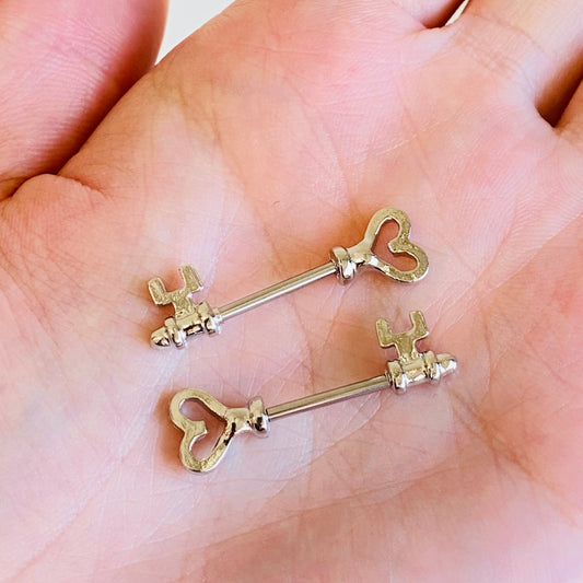 Steel Heart Key Nipple Barbell
