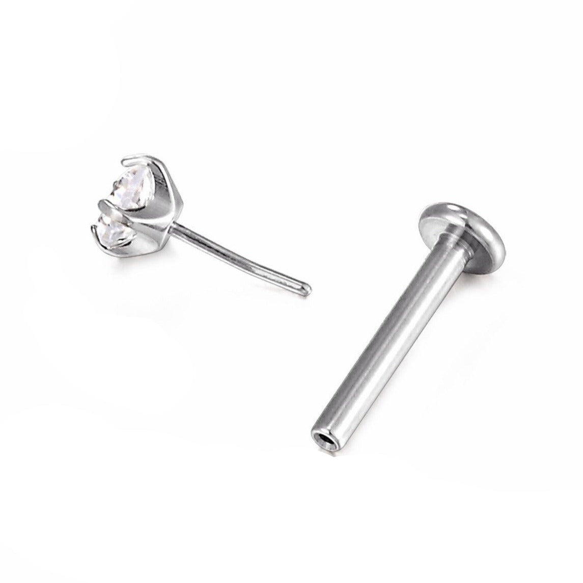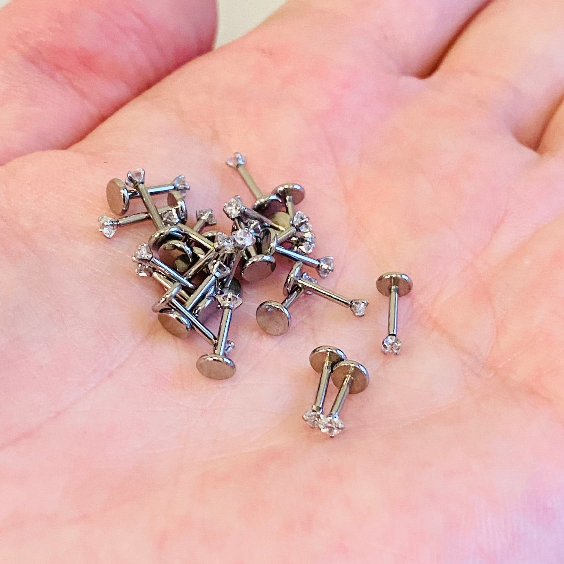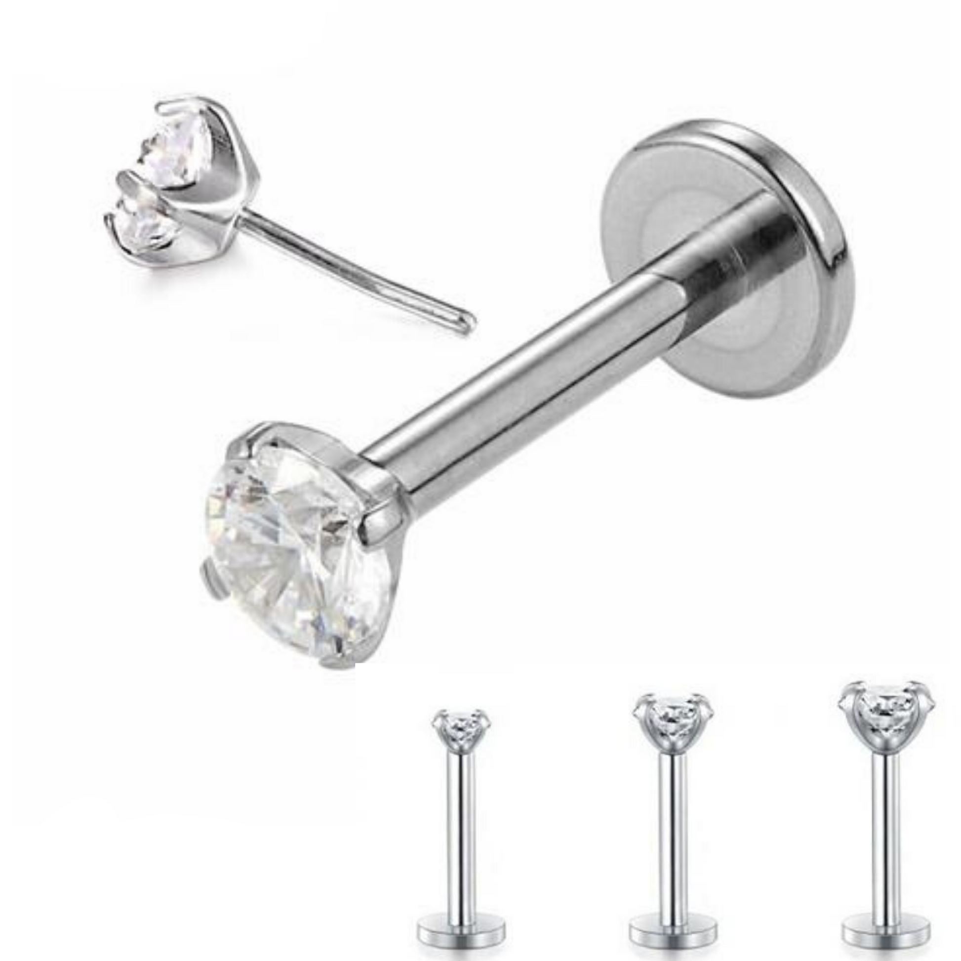 16G Prong Set CZ Threadless Push Click Pin Labret