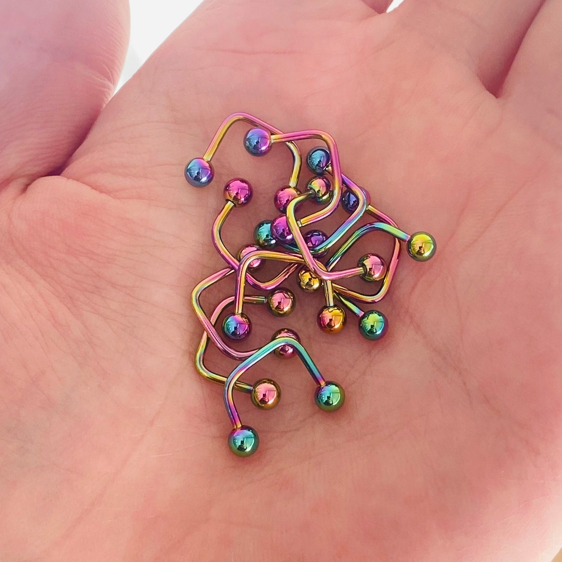 - 16G Rainbow Steel Ball Lippy Loop Labret