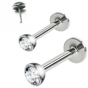 - Thread-less Clear CZ Ear Tragus Labret Flat Back Stud