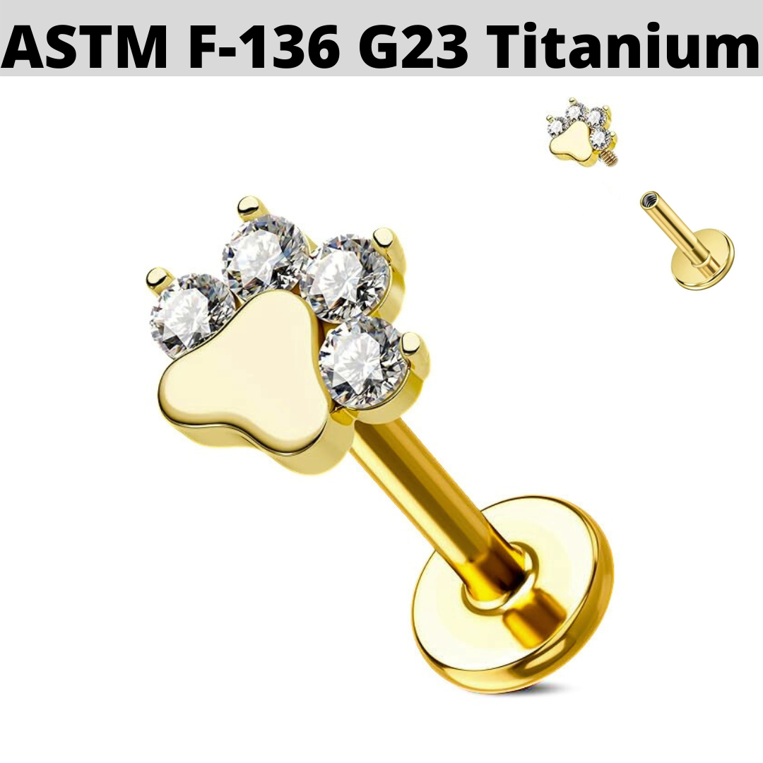 G23 Gold PVD Titanium Internally Threaded Paw CZ Tragus Labret