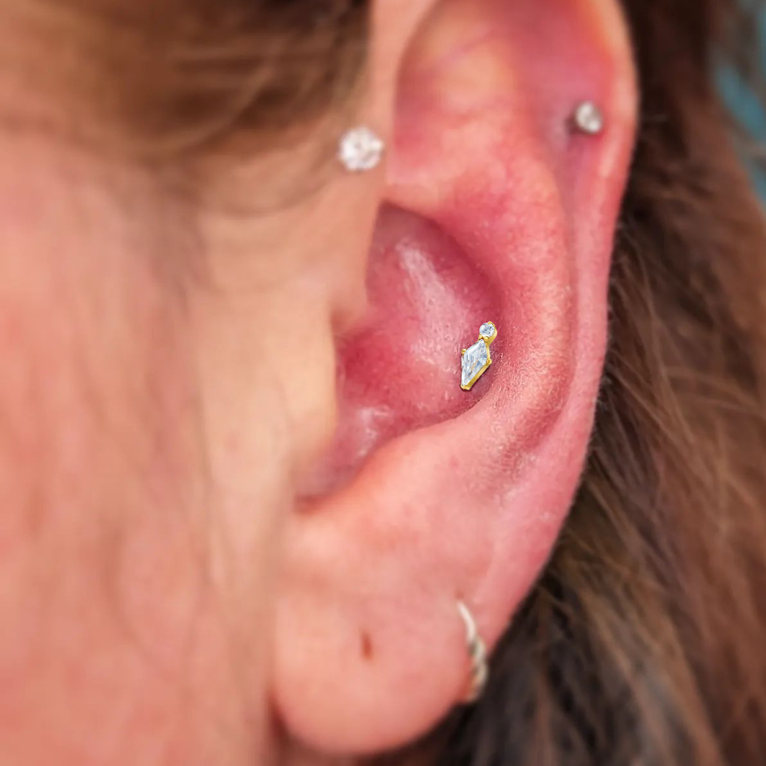 - Gold Titanium Internally Threaded Spear Kite CZ with Round CZ Labret