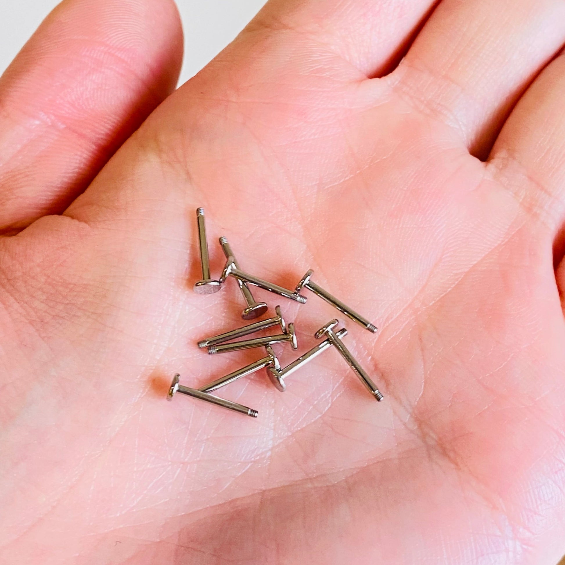- Solid Titanium Externally Threaded Labret Flatback Stud Shaft