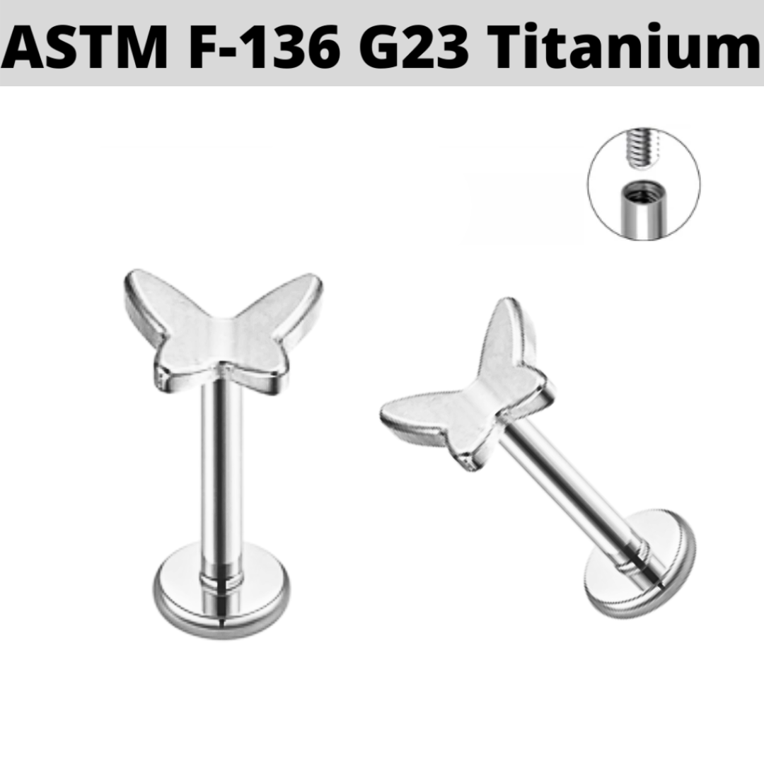 G23 Titanium Internally Threaded 3D Butterfly Labret