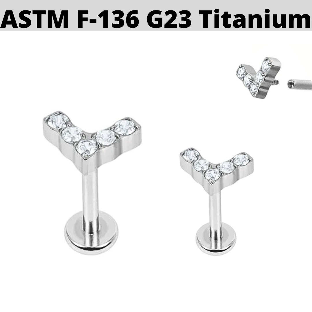 G23 Titanium Internally Threaded 5 CZ Chevron Top Tragus Labret