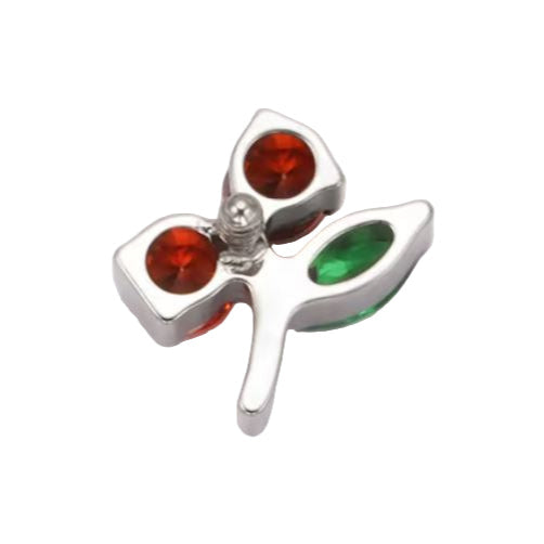 - Internally Threaded CZ Red Cherries with Green Marquise CZ Leaf Top