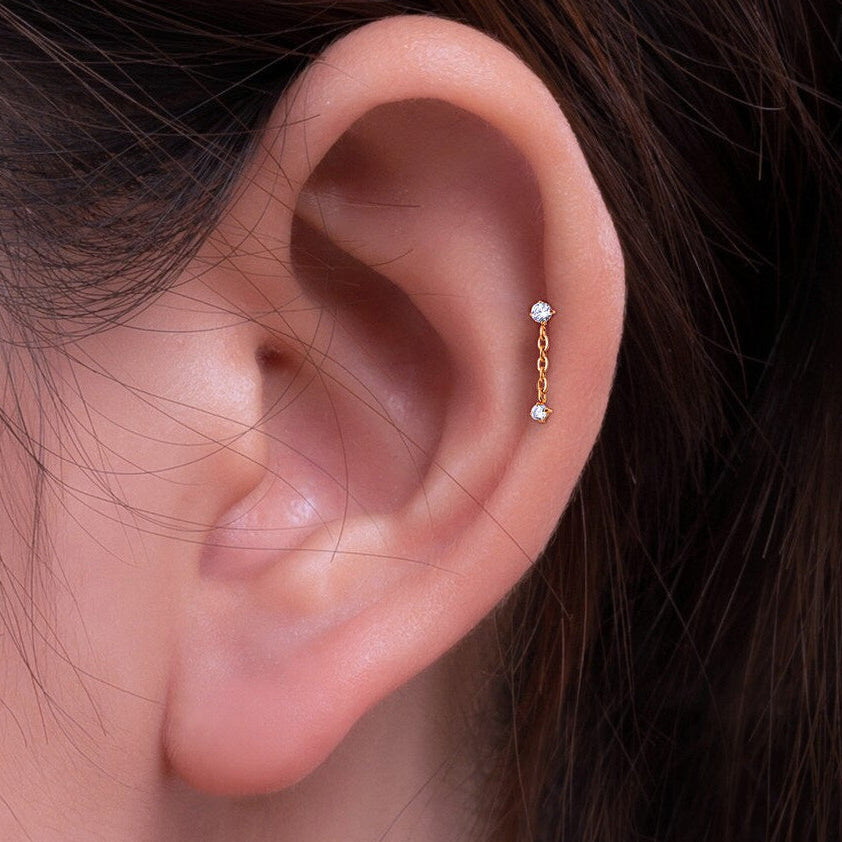 G23 Titanium Threadless Push In CZ Dangle Chain CZ Top