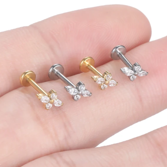 - Threadless Push In 2 Marquise CZ and 2 Round CZ Flower Labret