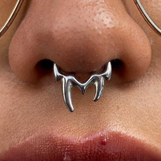 - G23 Implant Grade Titanium Hinged Tribal Fangs Clicker Segment Ring