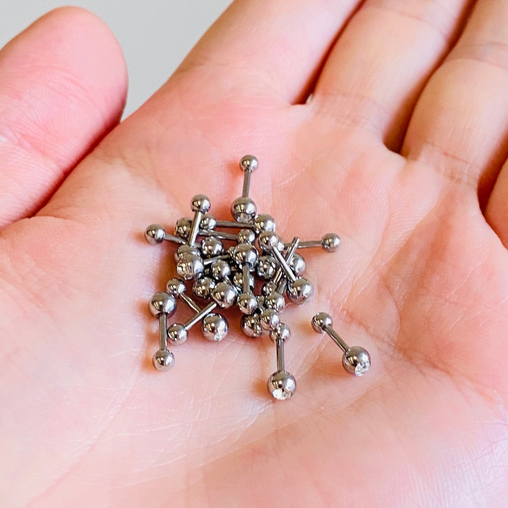 - Steel Tragus Cartilage Barbell with Round CZ Ball