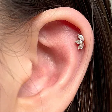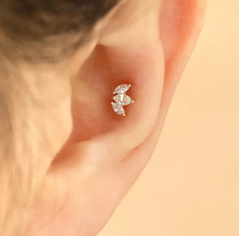 - Prong Set 3 Marquise CZ Fan Ear Tragus Flat Back Stud