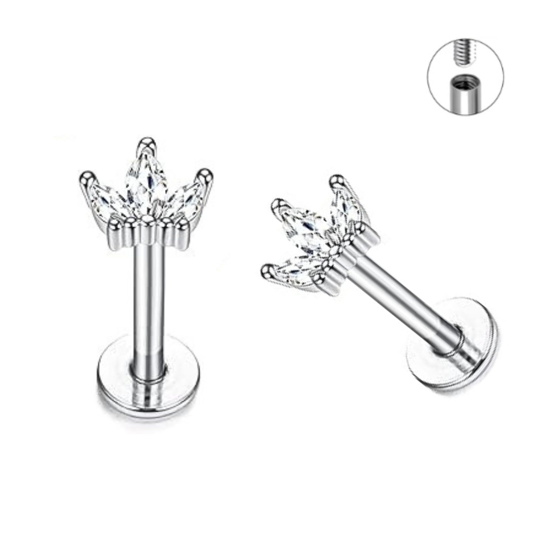 Internally Threaded Steel 3 Marquise Fan Tragus Labret