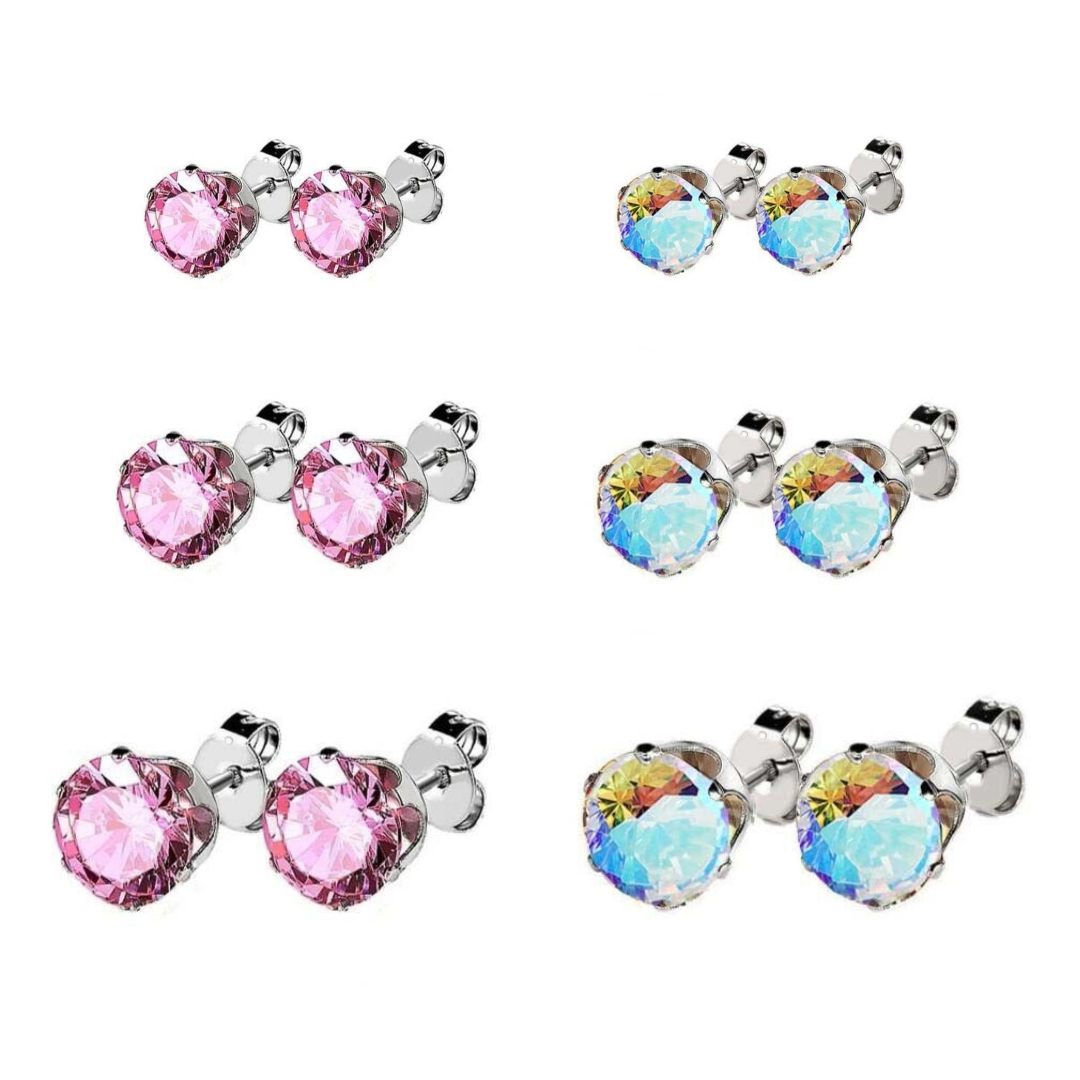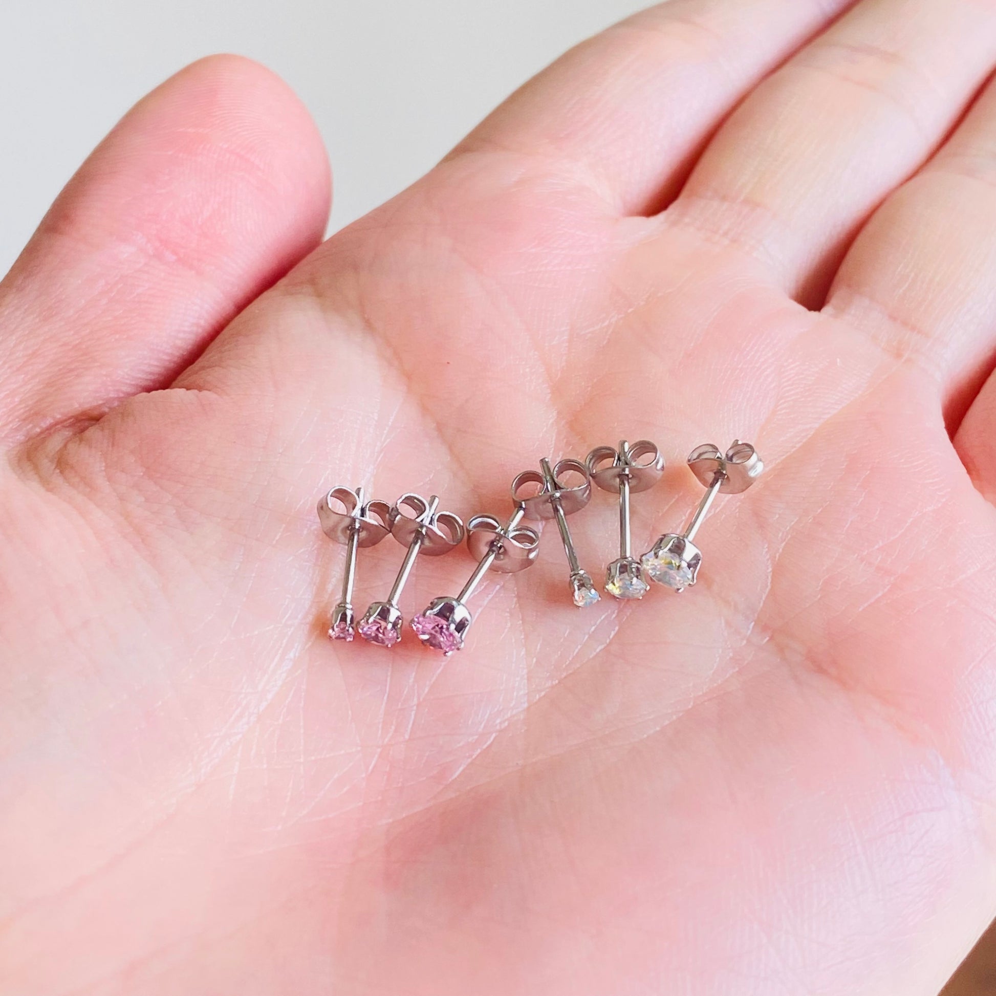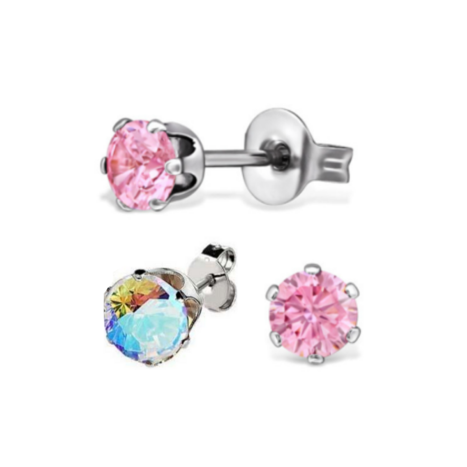 PAIR of 3mm AB Pink CZ Steel Stud Earrings