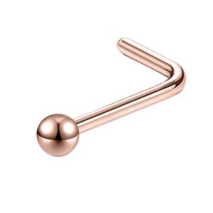 Rose Gold Steel Ion Plated Ball L Bend Nose Fishtail Ring