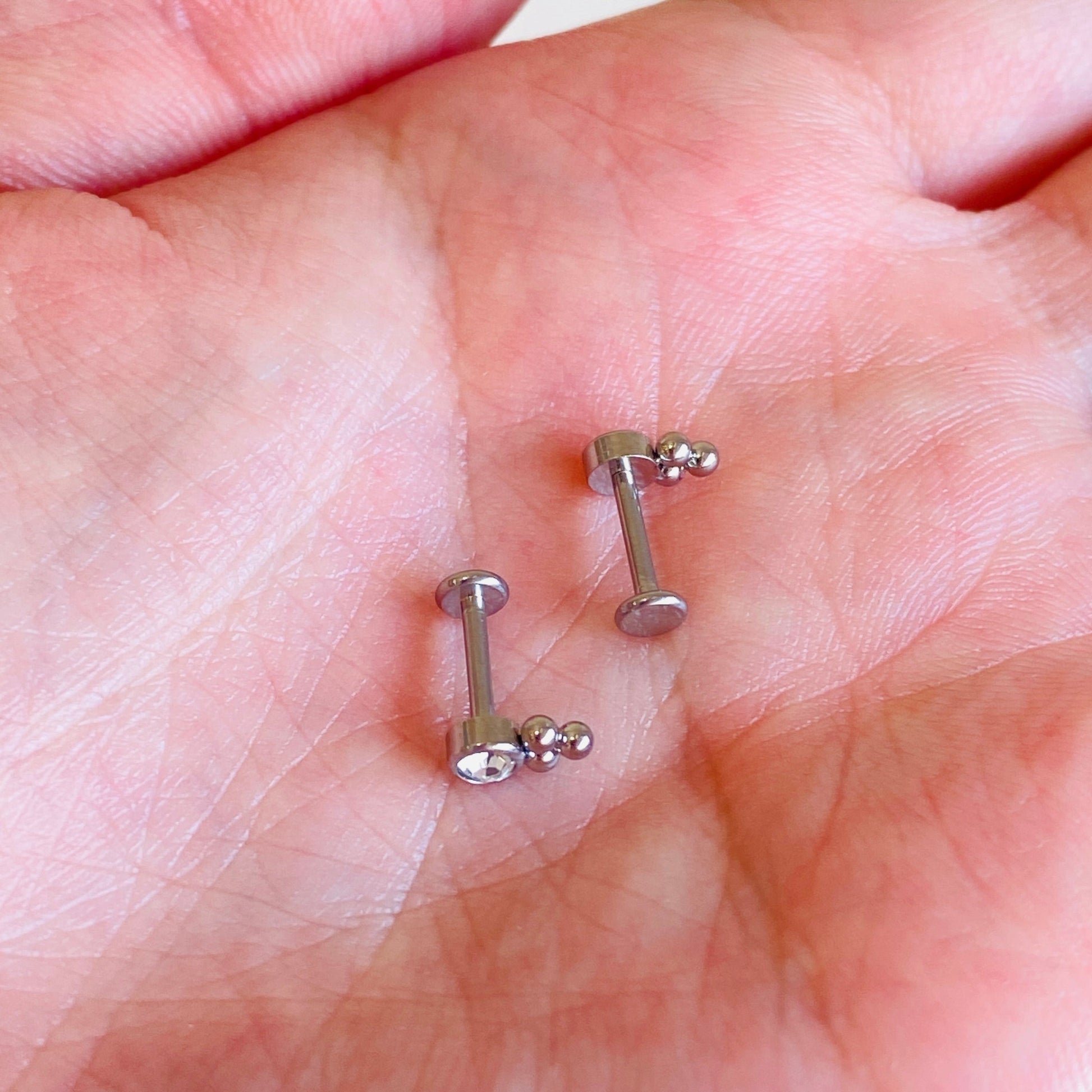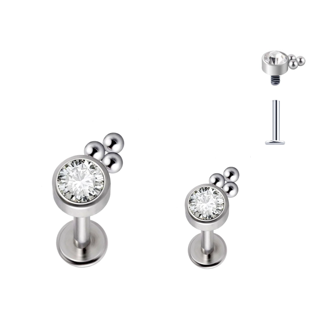 Steel Internally Threaded CZ Center 3 Beads Tragus Labret