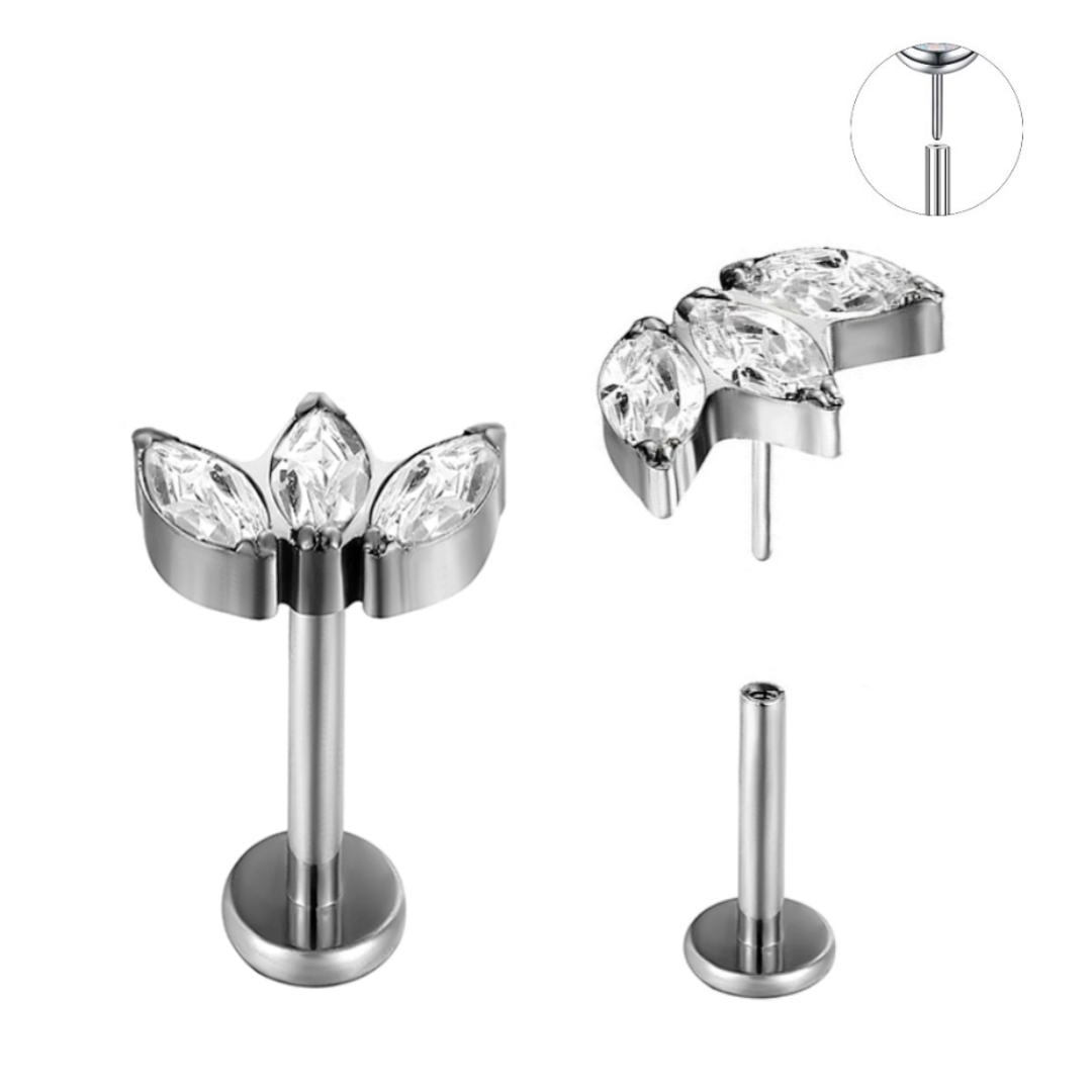 Steel Threadless Push In 3 Marquise Fan CZ Labret