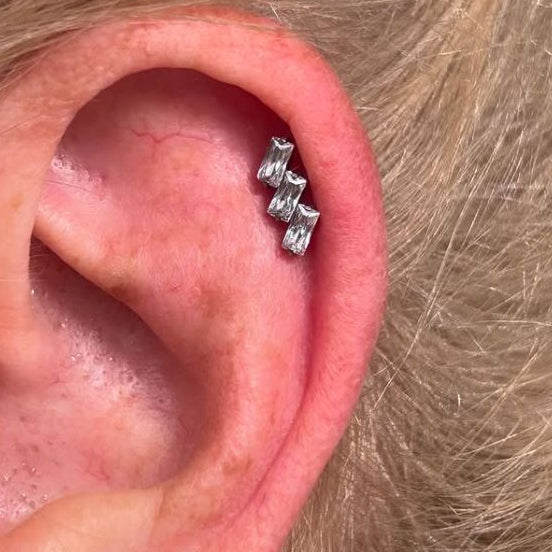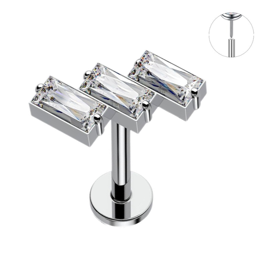 - Threadless Push In 3 Slanted Baguette CZ Tragus Labret