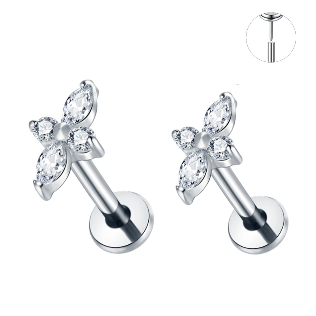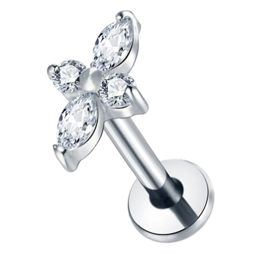 - Threadless Push In Marquise CZ Long Flower Tragus Labret