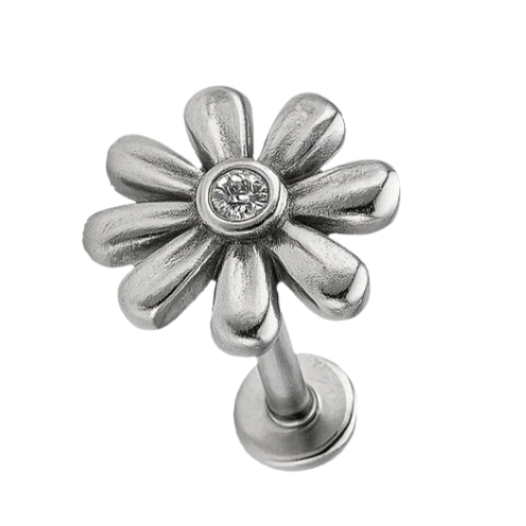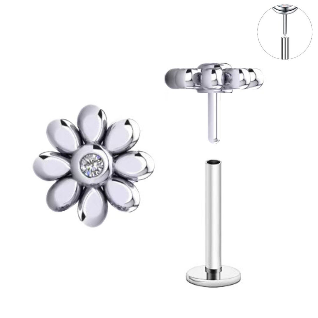 - Threadless Push In 3D Steel 8 Petals Flower with Center CZ Labret