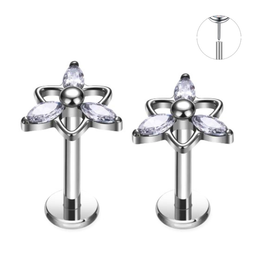 Steel Threadless Push In Triangle Marquise CZ Petal Tragus Labret