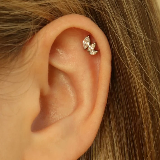 - Threadless Push In Steel 3 Marquise CZ Curved Cluster Labret