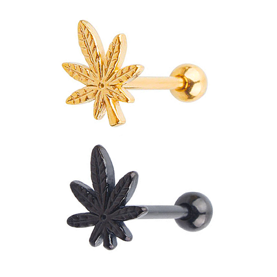 Marijuana Pot Leaf Logo Ion Plated Tongue Ring